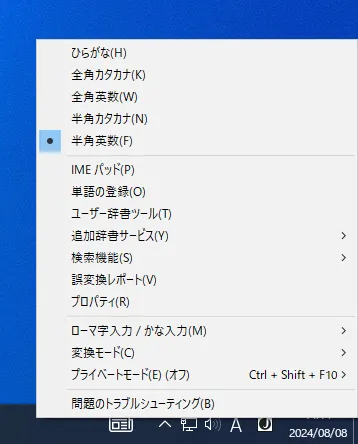 入力言語の詳細な設定は,画面右下のマークを右クリックすることで行えます.