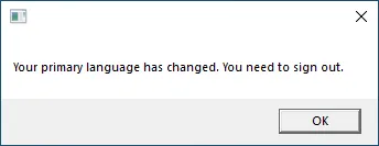 2. 表示言語の設定が変更されます.ダイアログが表示されたら「OK」をクリックしてください.