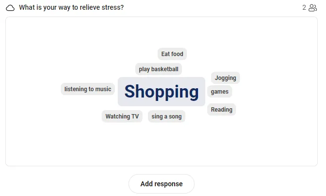 - The answers will be displayed in format as shown in the figure. If there are multiple identical answers, the word will be displayed larger. (On students’ screen)