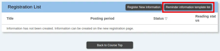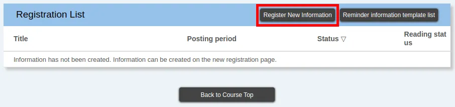 1. Click the “+” button of “Information” on the course top screen or select “Register New Information” after clicking the “Manage Information”.