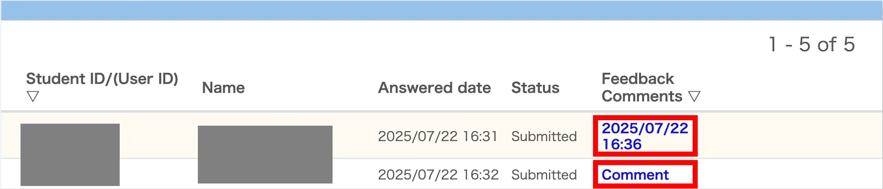 In addition, by clicking on a student’s student ID (or Common ID) in the “Check all submission status” screen, you can view the response status of that individual student.