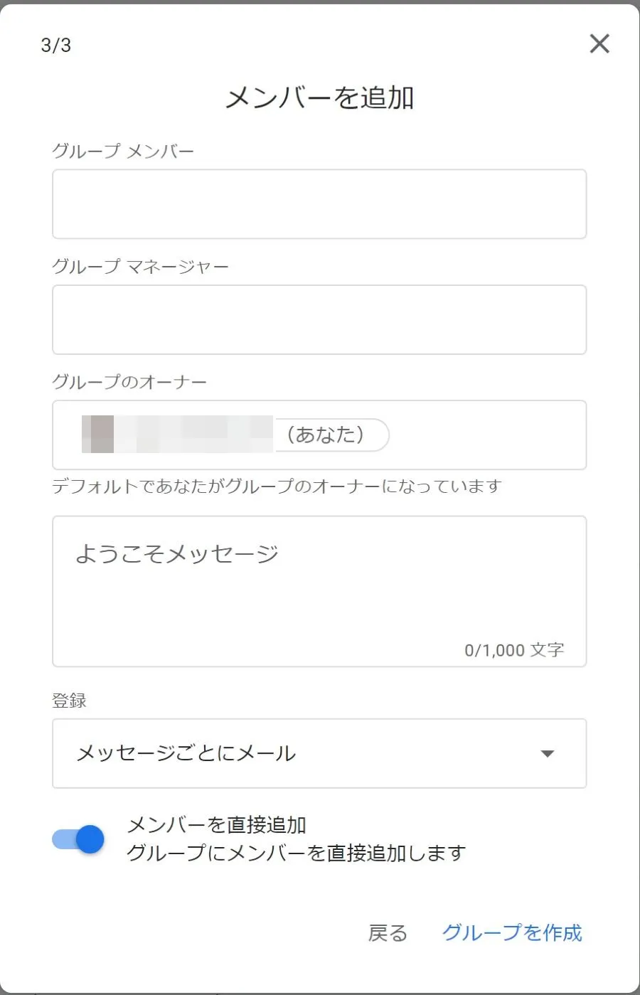 「グループ メンバー」にグループに追加したいメンバーのメールアドレスを入力してください.