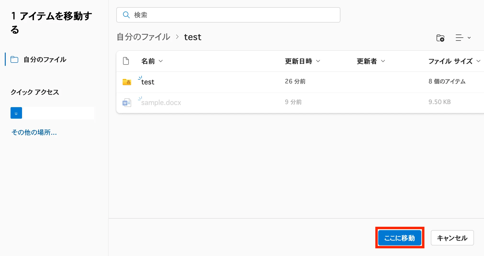 3. 画面下部の「ここに移動」を押してください.選択したフォルダにファイルが移動されます.