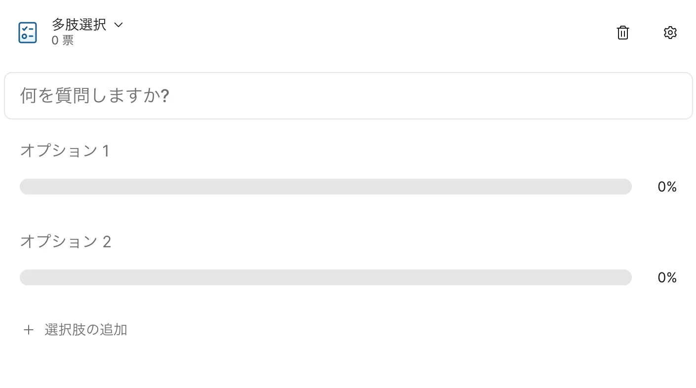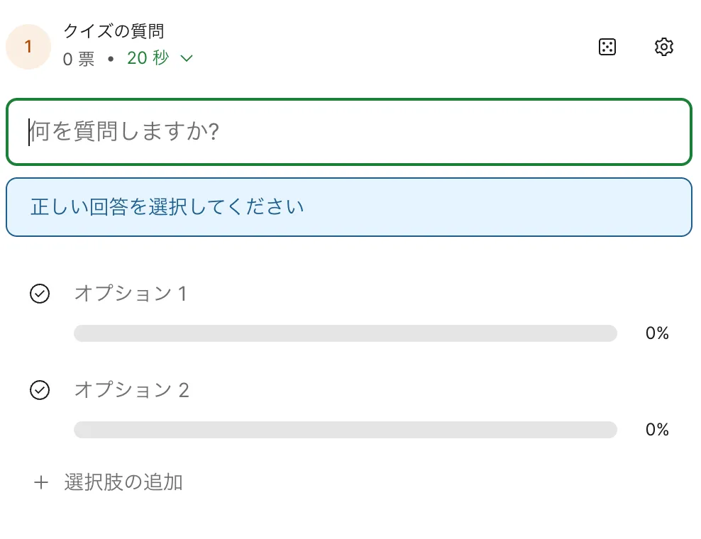 投票を作成するには,画面左上の「+ 追加(新しいインタラクションを追加)」を選択してください.