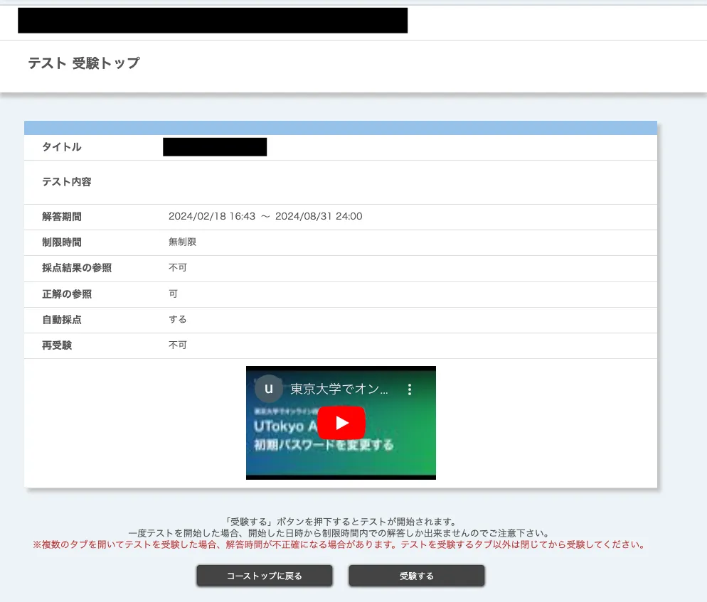 • 公開対象*:テストを受験できる履修者を制限する機能です.