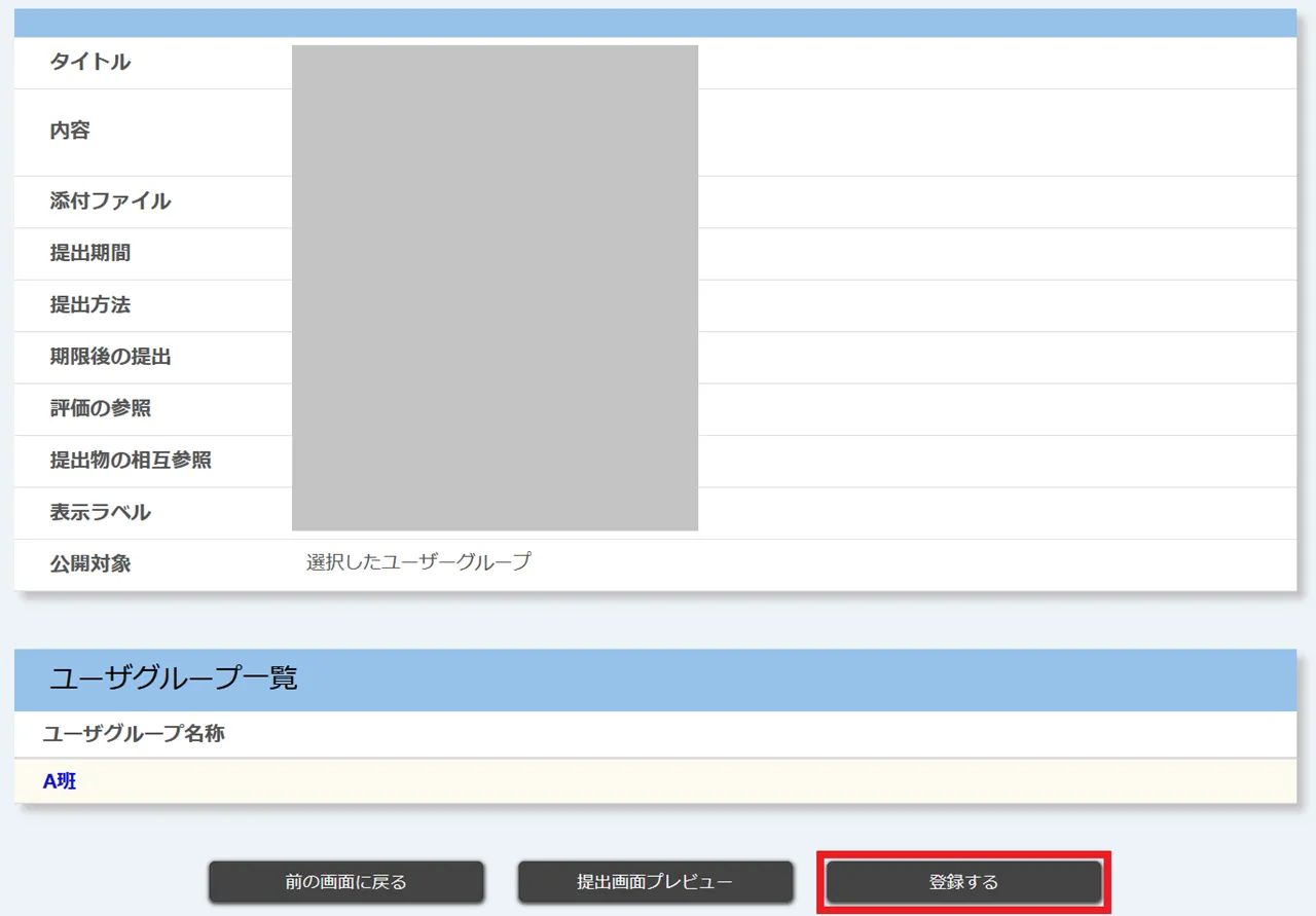 5. 内容を確認し,問題がなければ「登録する」を押してください.
