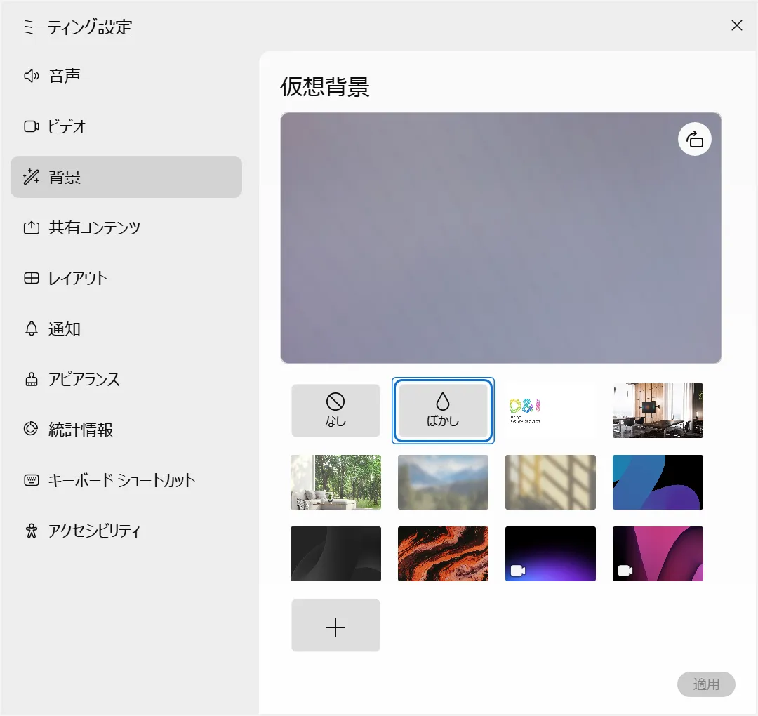 「仮想背景を変更」をクリックすると次のような画面が表示されます.