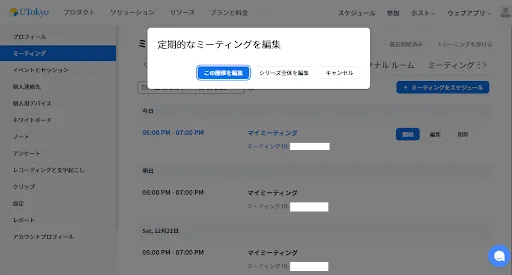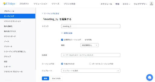 • この記事ではこの画面を「ミーティング編集の画面」と呼びます.