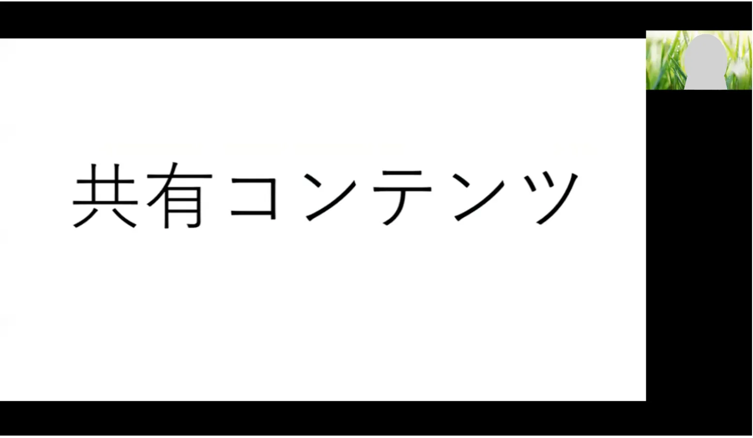 また,ミーティング中に参加者が画面共有を行った場合,その共有コンテンツもレコーディングされます.共有コンテンツを含む場合のレイアウトは,参加者のビデオの表示の有無や配置は,録画をしている人が事前に設定したレイアウトに従います.